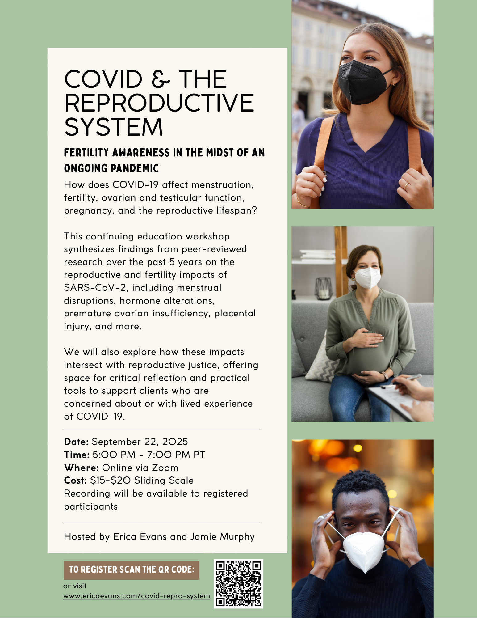 Join FAE Erica Evans for a two-hour workshop about how COVID-19 virus impacts our reproductive health.