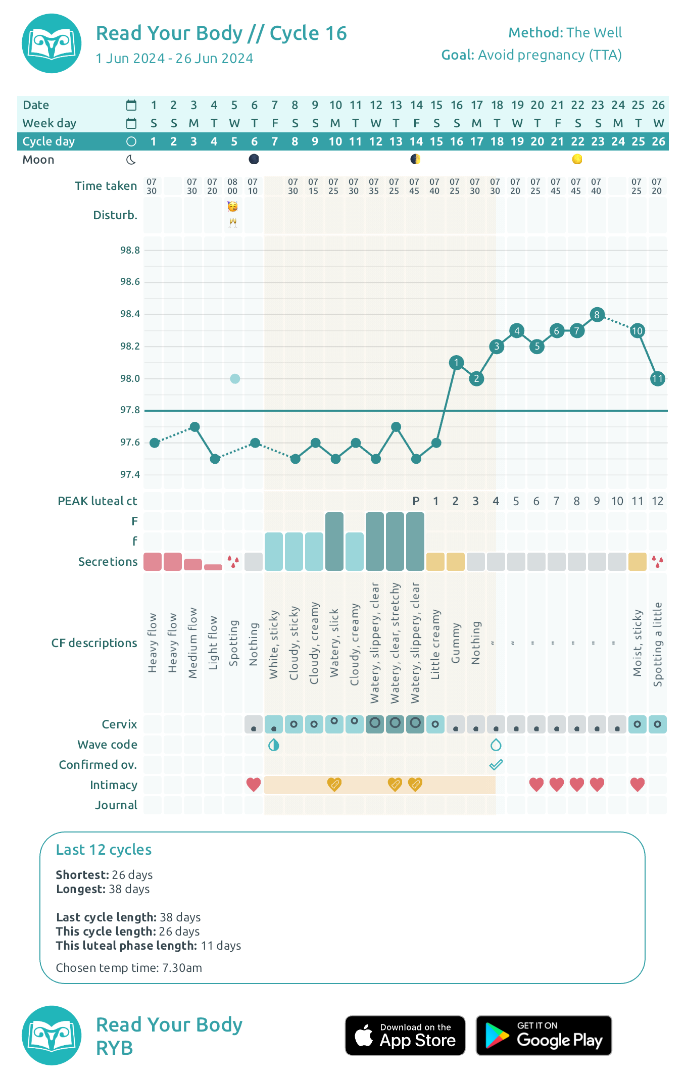 Read Your Body is the most private and customizable cycle charting app on the market and is the only app whose use is endorsed by The Well. They are female led, privacy-focused and non-profit, they have a transparent subscription-based funding model, they strive to constantly evolve with input from their community, and they are inclusive of all charting goals, values, and practices.